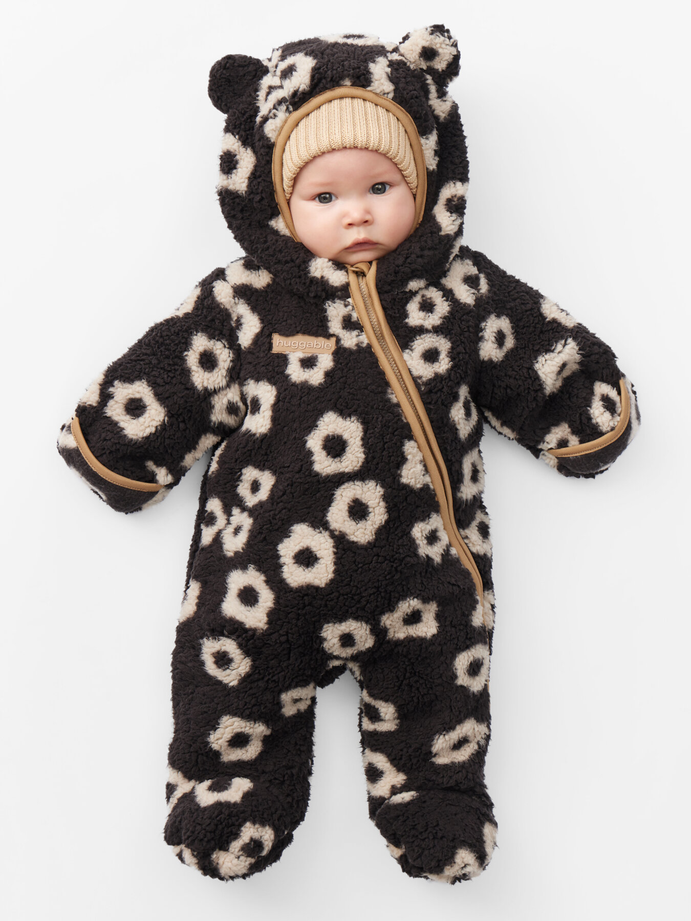 89055, Комбинезон детский флисовый Happy Baby, для новорожденных, под верхнюю одежду, с капюшоном, с ушками, бежевый с мишками, рост 56-62 3 749 ₽