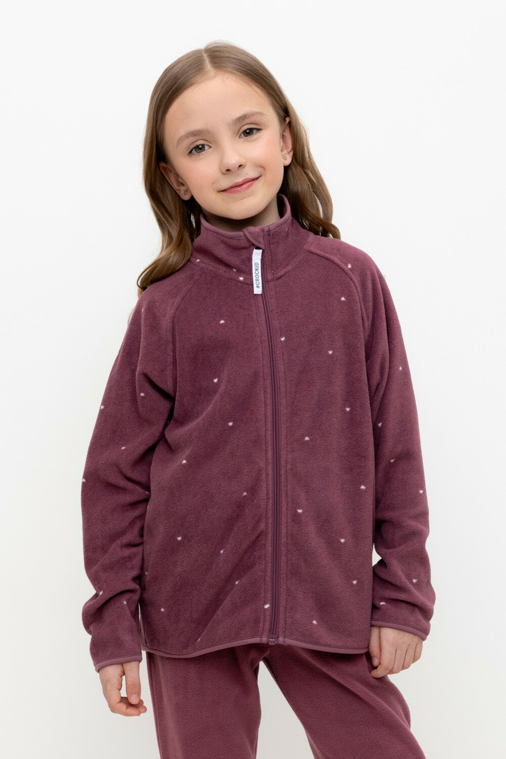 Флисовая куртка с воротником для девочки, Crockid ФЛ 34025/амарант,сердечки р 64/122 1 619 ₽
