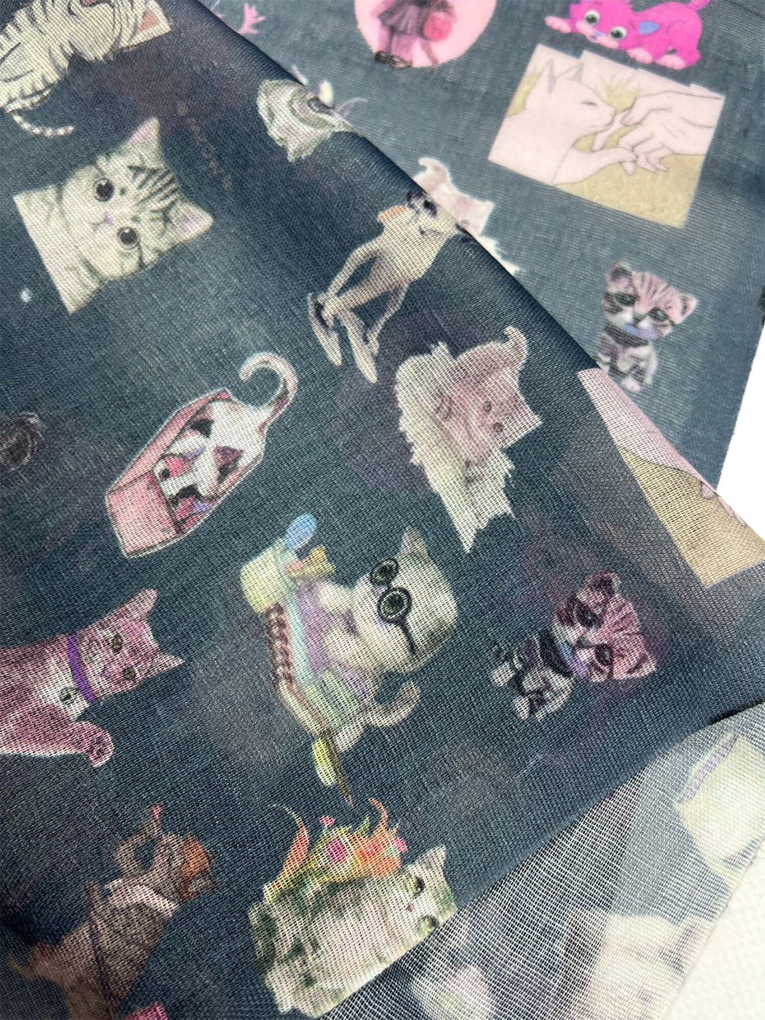 Хлопковый женский палантин с модными котами, новинка 2024г, женский платок с кошками, серый информация: