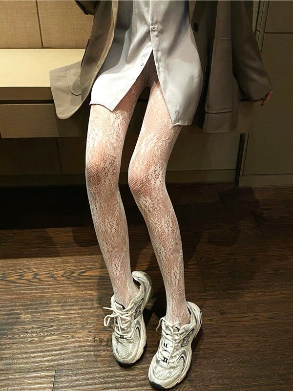 10 цен на Колготки женские RED MOSS капроновые ажурные с рисунком белые универсальный размер, оверсайз 42-54