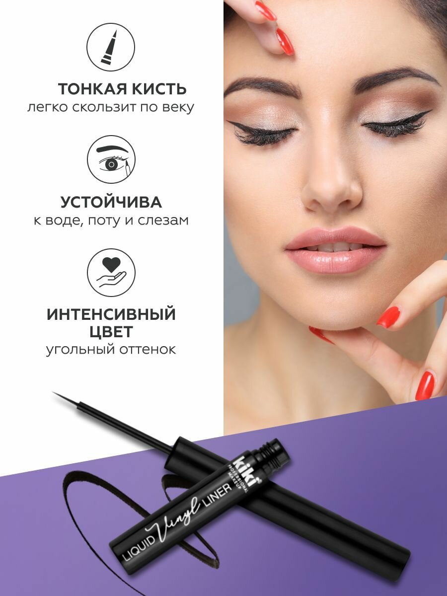 Отзывы на Жидкая подводка лайнер для глаз kiki VINYL с тонкой кисточкой, черная стойкая матовая