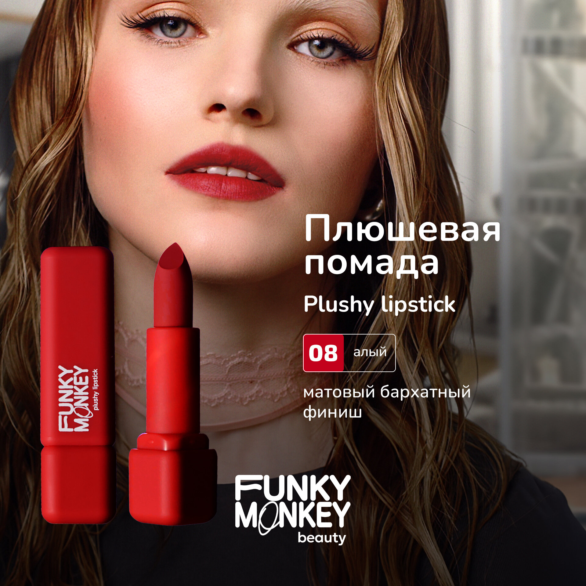 Отзывы на Funky Monkey Помада для губ плюшевая Plushy lipstick тон 08 красная