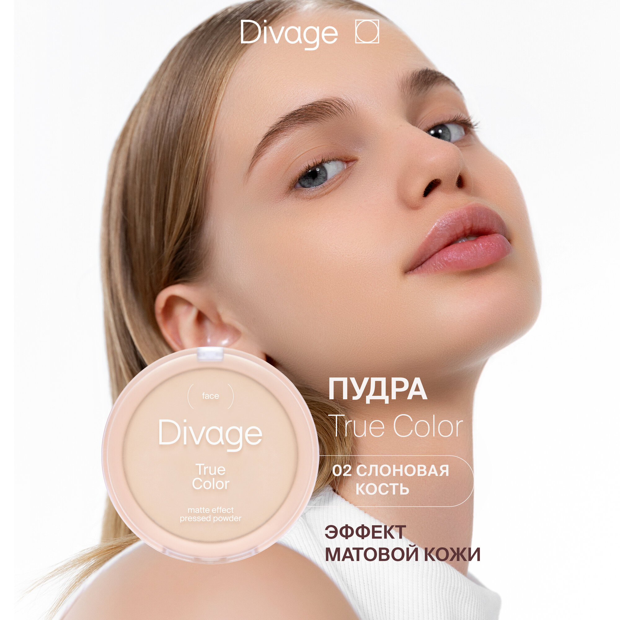 10 цен на Divage Пудра для лица компактная True Color, Тон 02 ivory