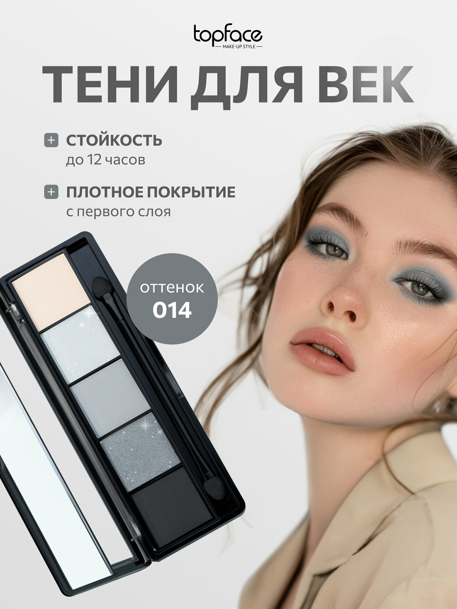 Тени для век Topface, серый цвет, матовые и сверкающие тени, компактная текстура, палетка 014 690 ₽