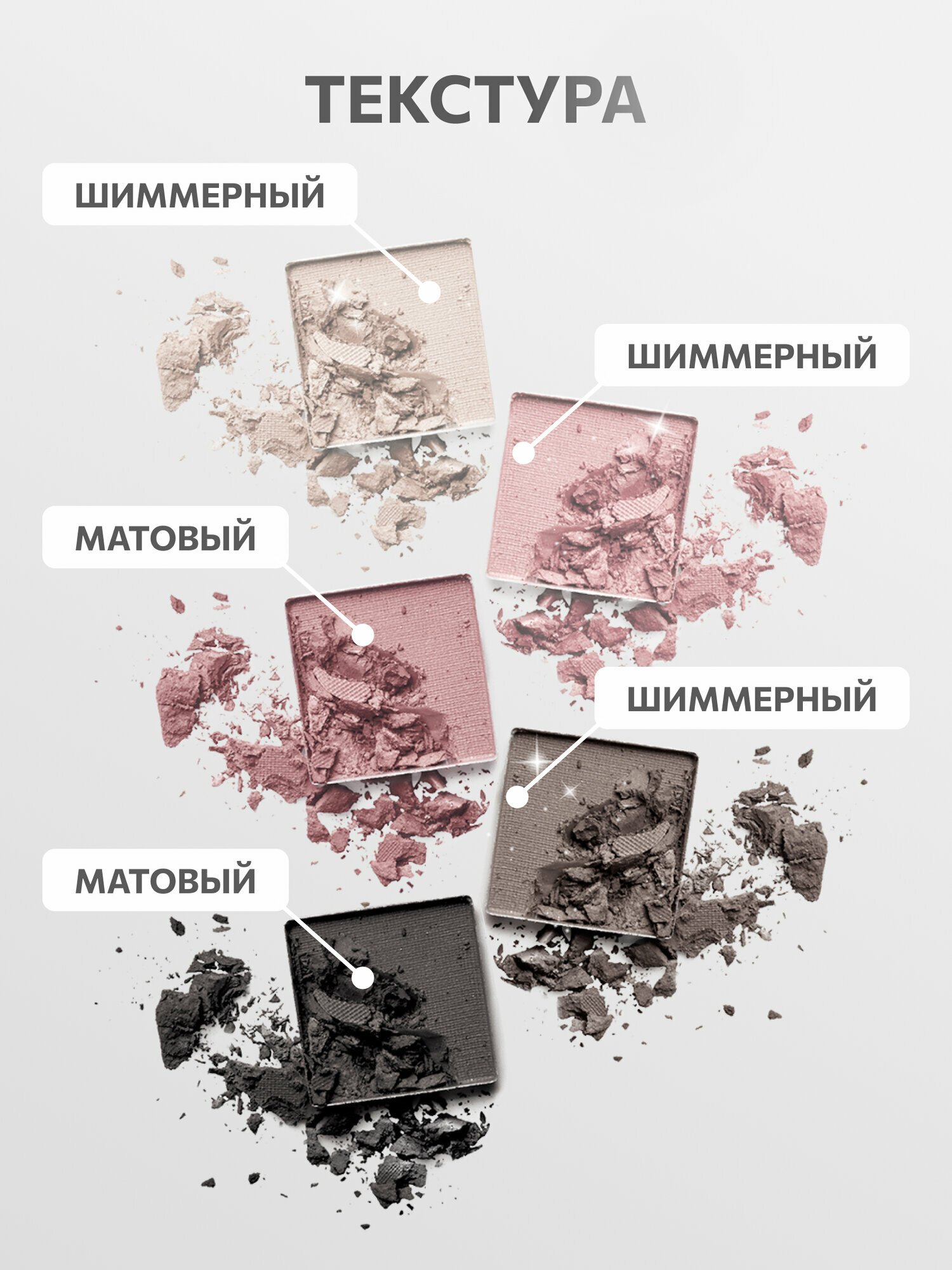 Тени для век Topface, серый цвет, матовые и сверкающие тени, компактная текстура, палетка 014 690 ₽