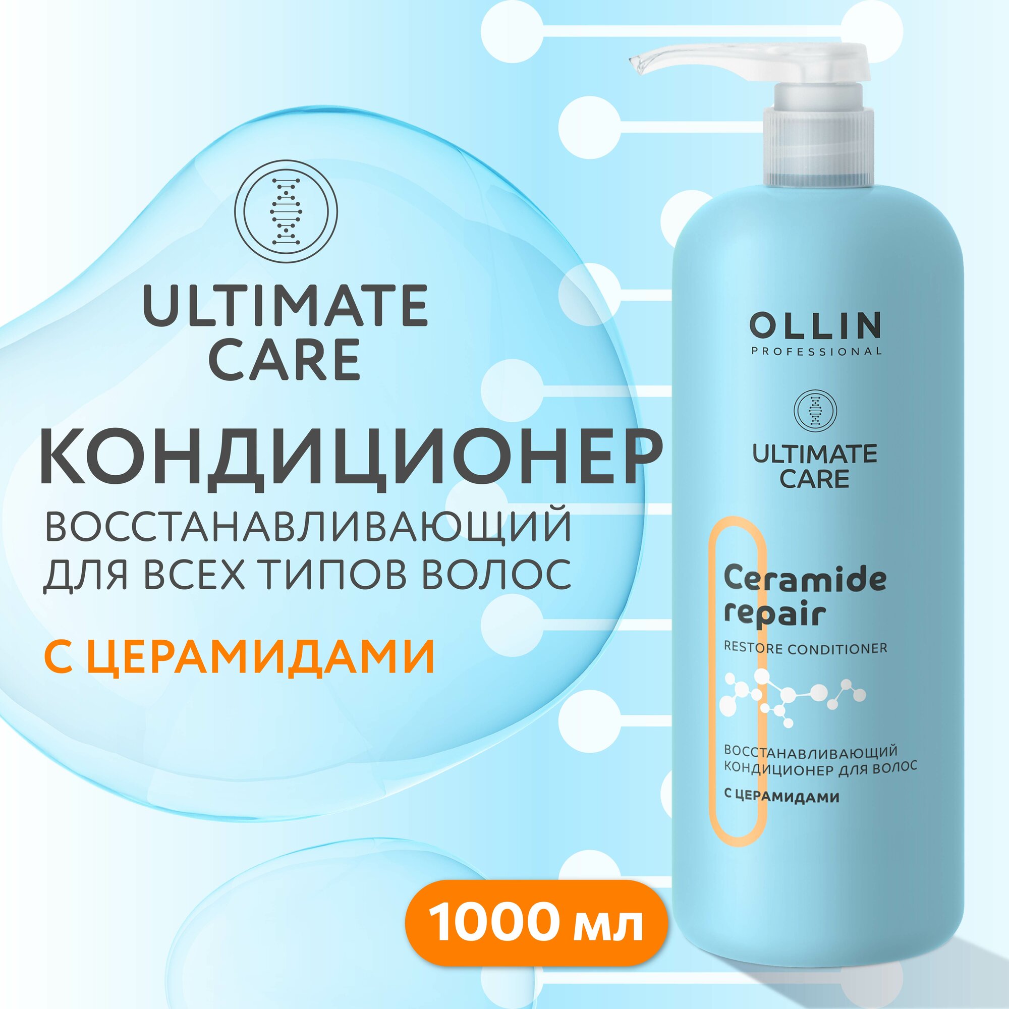 ULTIMATE CARE Восстанавливающий кондиционер для волос с церамидами 1000мл OLLIN PROFESSIONAL