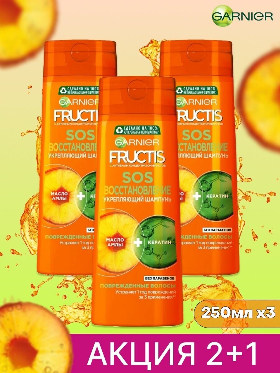 Garnier Шампунь для волос Fructis SOS Восстановление, 250 мл, 3 шт 2 140 ₽