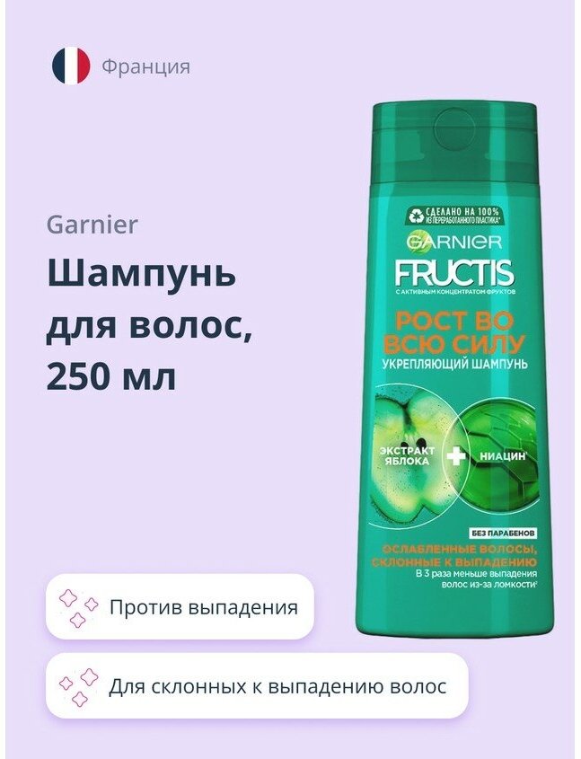 Garnier Fructis Укрепляющий шампунь Фруктис Рост во всю Силу, для ослабленных волос, склонных к выпадению, 250 мл