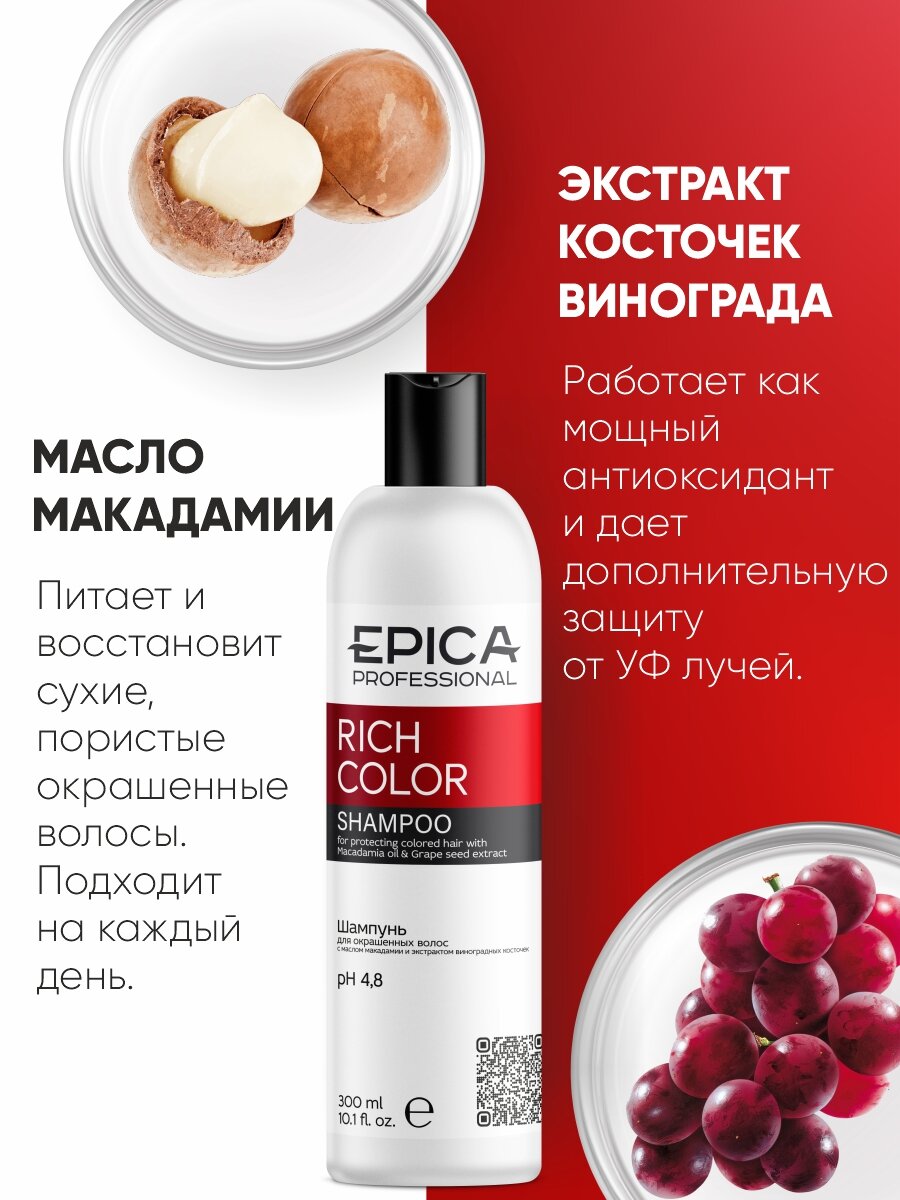 EPICA PROFESSIONAL Rich Color Шампунь для окрашенных волос, с маслом макадамии и экстрактом виноградных косточек, 300 мл
