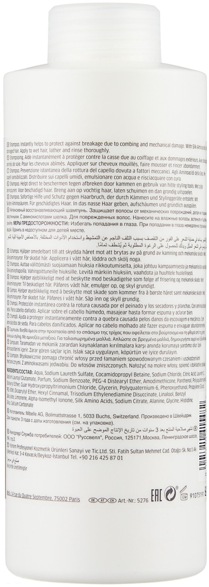 | Состав | aqua, sodium laureth sulfate, cocamidopropyl betaine, sodium chloride, citric acid, laureth-2, sodium lauroyl glutamate, parfum, sodium benzoate, peg-4 distearyl ether, amodimethicone, panthenol, polyquaternium-10, distearyl ether, guar hydroxypropyltrimonium chloride, glycerin, polyquaternium-6, phenoxyethanol, propylene glycol, peg-90m, dicaprylyl ether, hexyl cinnamal, trisodium ethylenediamine disuccinate, linalool, benzyl salicylate, limonene, alpha-isomethyl ionone, silk amino acida, sodium citrate, alanine, glycine, histidine, silica, calcium carbonate |