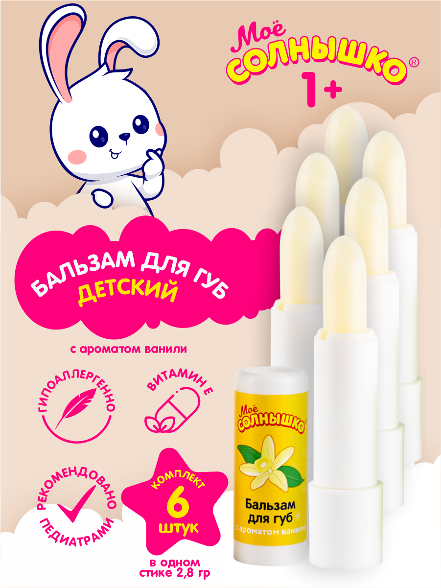 10 цен на Бальзам для губ детский с ароматом ванили Мое Солнышко 2,8 гр. х 6 шт.