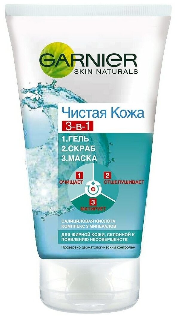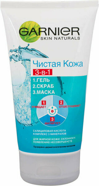 Средство для умывания Garnier Чистая Кожа, Гель-Маска-Скраб, Глубокое очищение, 3 в 1, 150 мл (C1841811/C1841809/C1841808) информация: