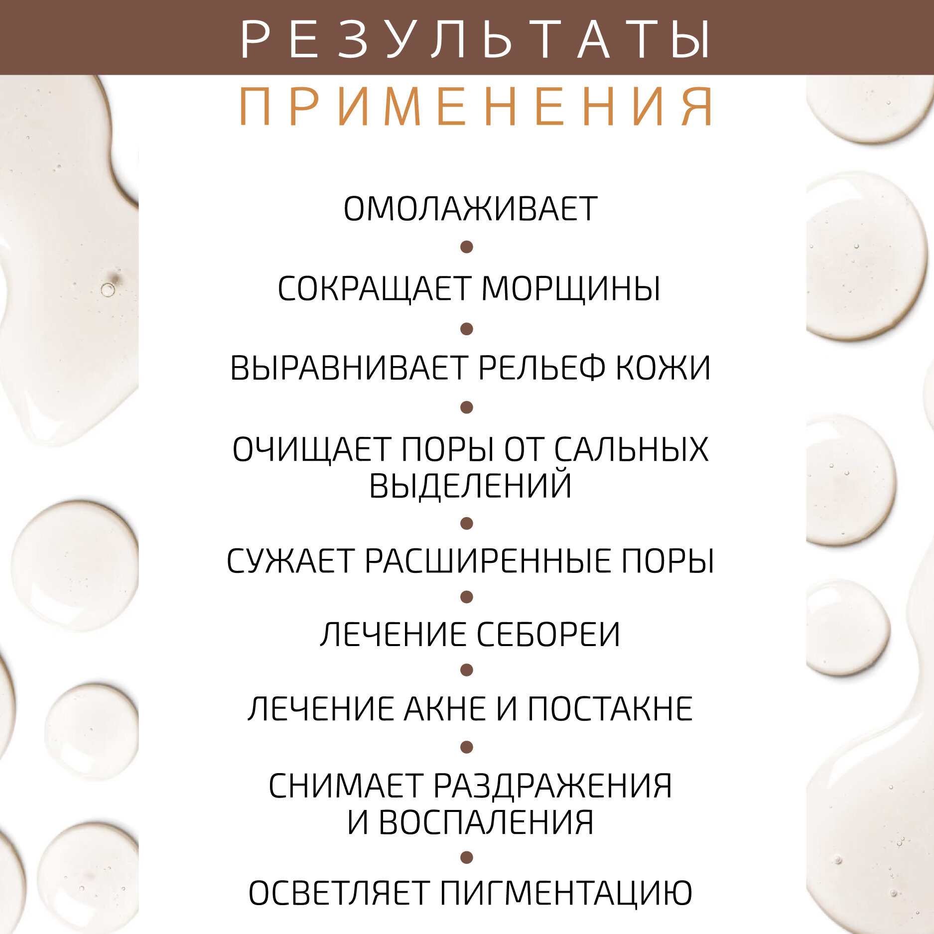 | Эффект | выравнивание микрорельефа / омоложение / от веснушек и пигментных пятен / от морщин / от черных точек / отбеливание / отшелушивание / очищение / снятие воспалений / сужение пор / увлажнение / улучшение цвета |
