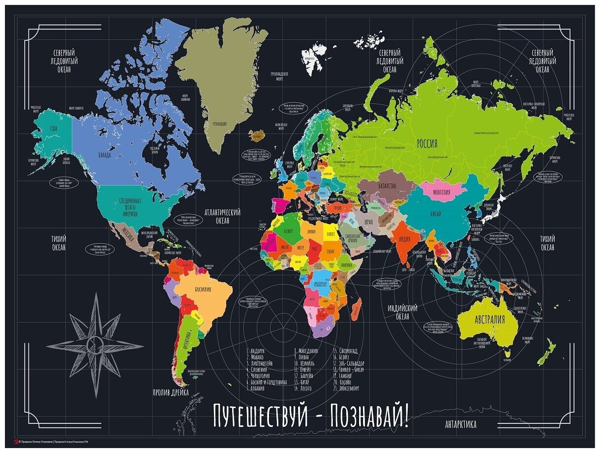 10 цен на Карта мира со стираемым слоем "Путешествуй-Познавай" (650*450мм) в тубусе
