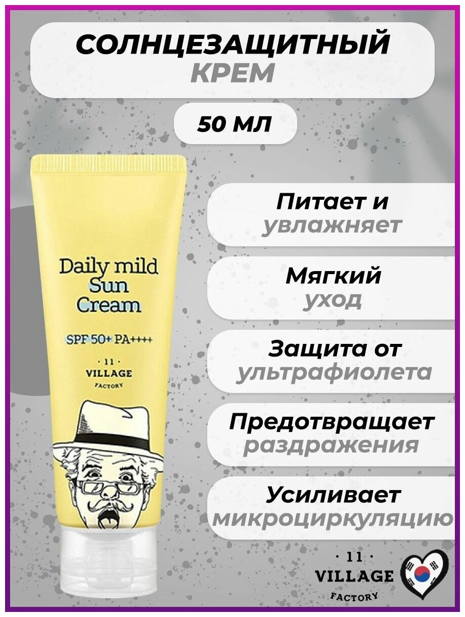 Солнцезащитный крем VILLAGE 11 FACTORY "Daily Mild Suncream", для ежедневного применения SPF 50, 50 . информация: