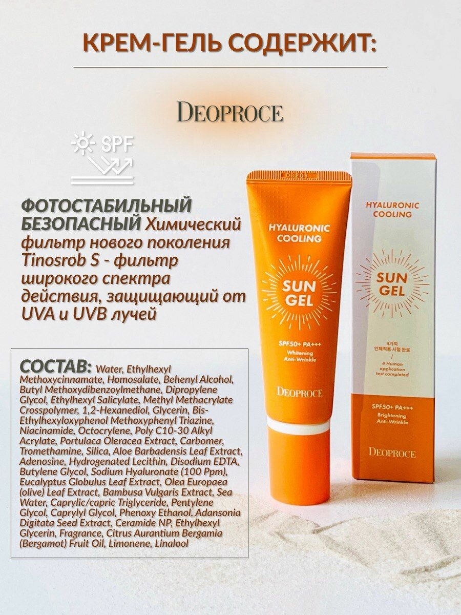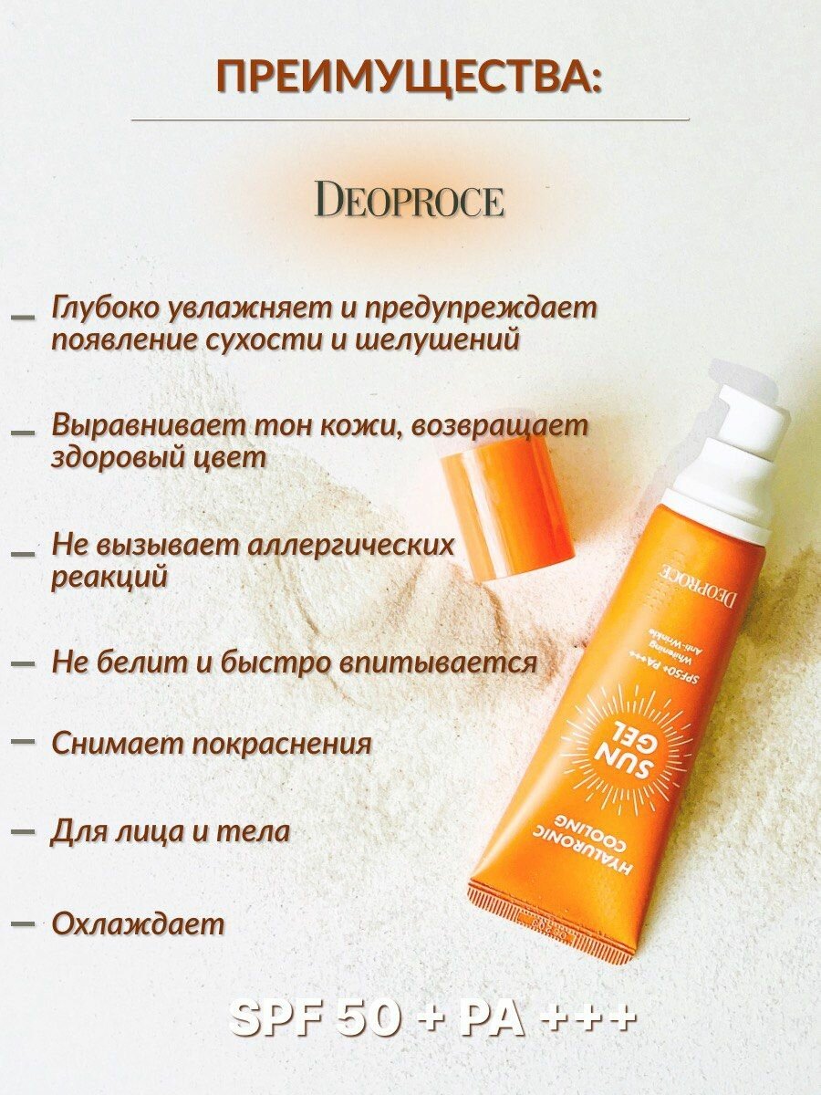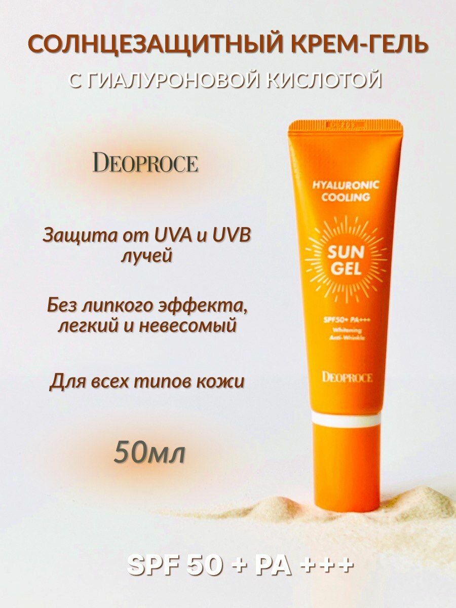 10 цен на Deoproce Солнцезащитный крем гель для лица охлаждающий с гиалуроновой кислотой, увлажняющий и предупреждающий появление сухости и шелушений Hyaluronic Cooling Sun Gel SPF 50 + PA+++ 50 мл