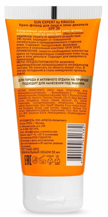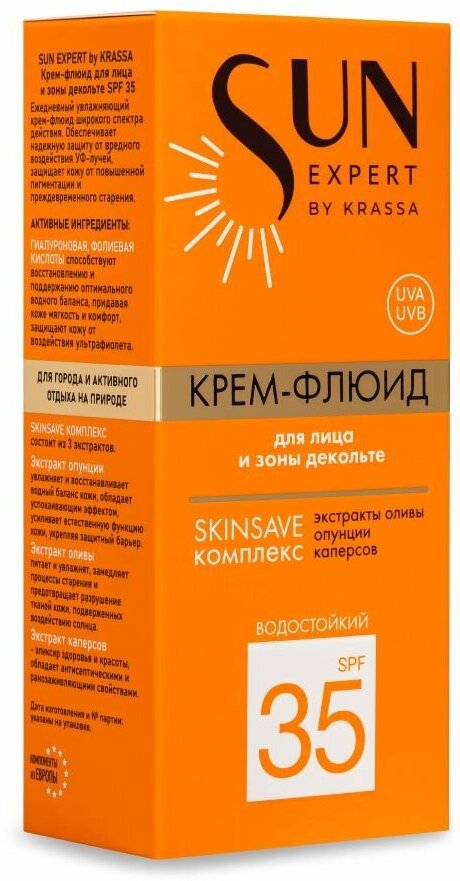 SUN EXPERT by KRASSA Солнцезащитный крем флюид для лица и зоны декольте от загара от солнца SPF 35, 50 мл информация: