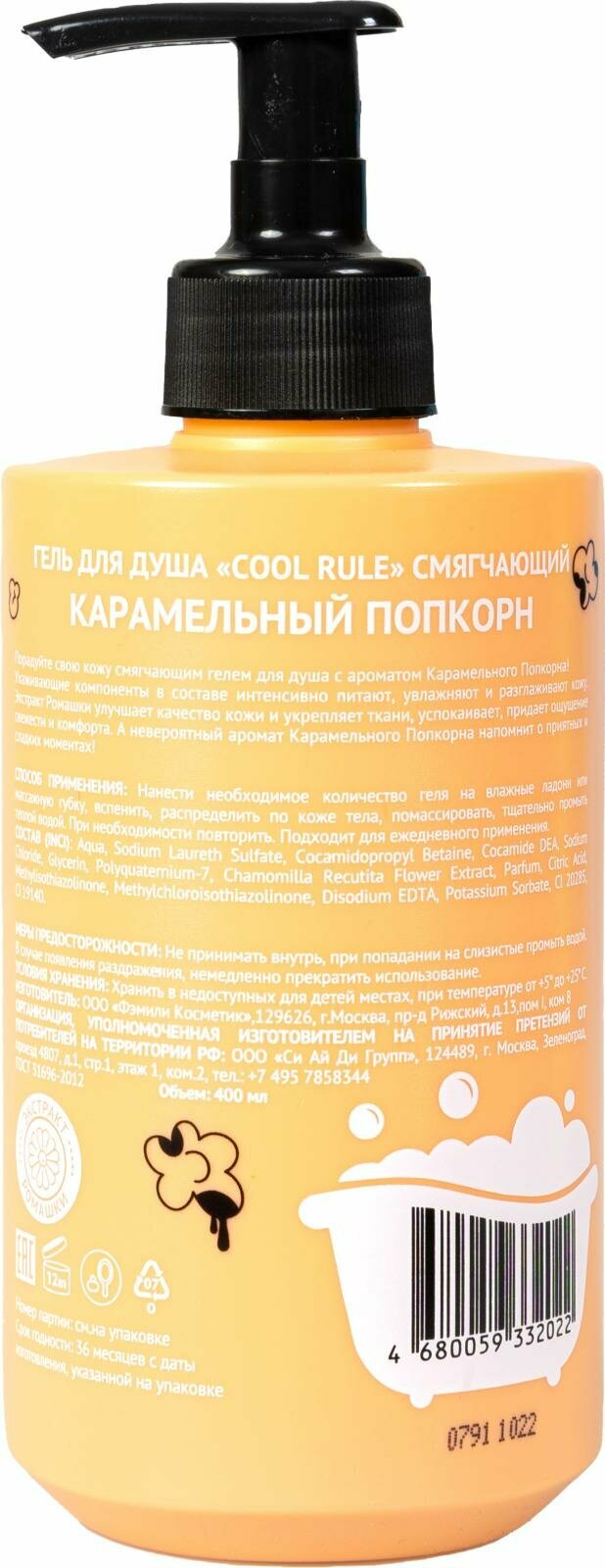 Cool Rule Гель для душа Смягчающий Карамельный Попкорн 400 мл 1 шт информация: