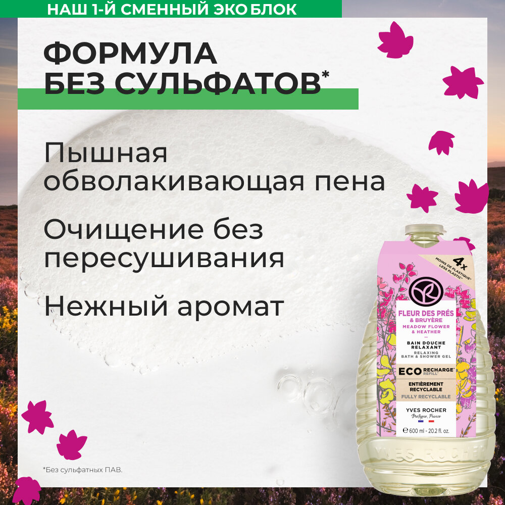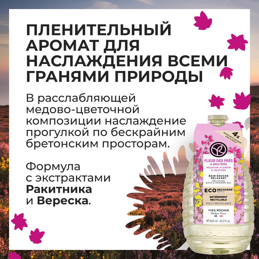 10 цен на Yves Rocher Гель для ванны и душа "Ракитник и вереск", сменный блок, 600мл