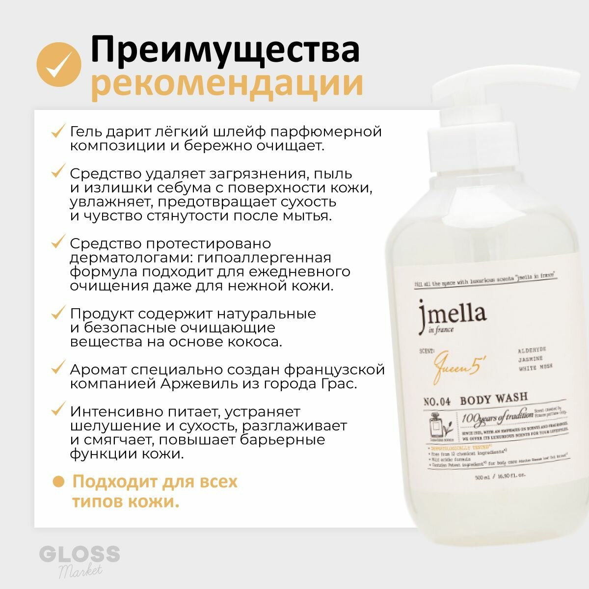 Jmella Парфюмированный гель для душа Королева 5 N0.04 In France Queen 5 Body Wash, 500 мл информация: