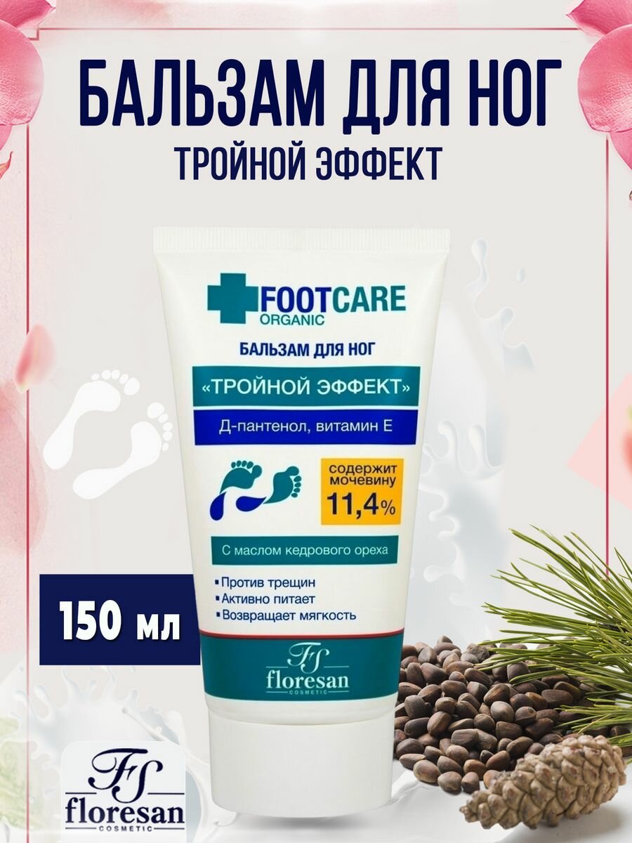 10 цен на Floresan Бальзам для ног против трещин Тройной эффект с маслом кедрового ореха Organic foot care 150мл