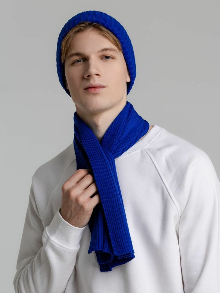 10 цен на Шапка бини кусто вязаная с отворотом теплая женская мужская унисекс Yong синяя