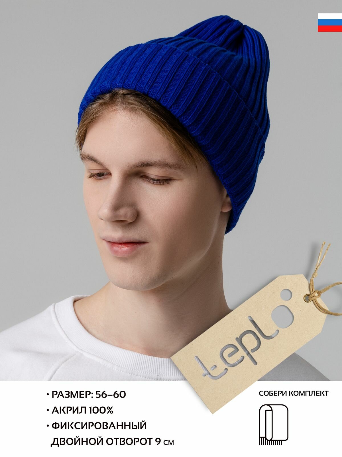 Шапка бини teplo для женщин, размер One Size, синий 565 ₽