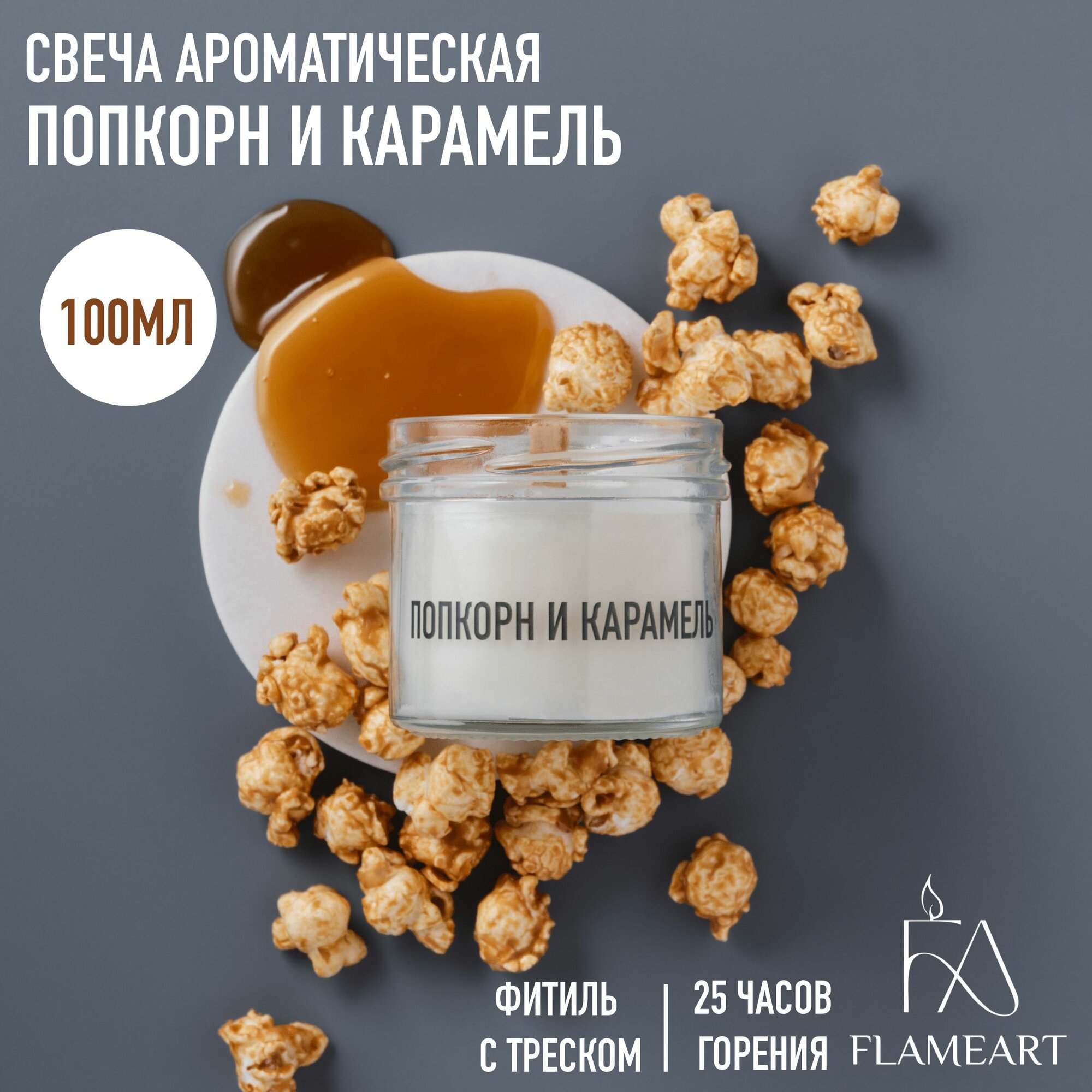 Свеча ароматическая восковая с ароматом Попкорн и карамель информация: