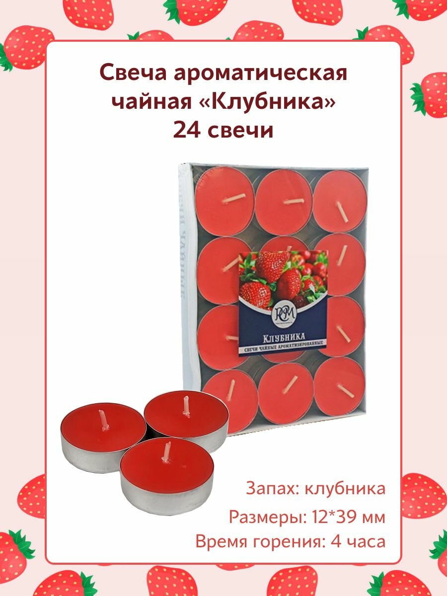 10 цен на Свеча Чайная ароматическая "Клубника" 12*39 мм, запах: клубника, 24 шт.