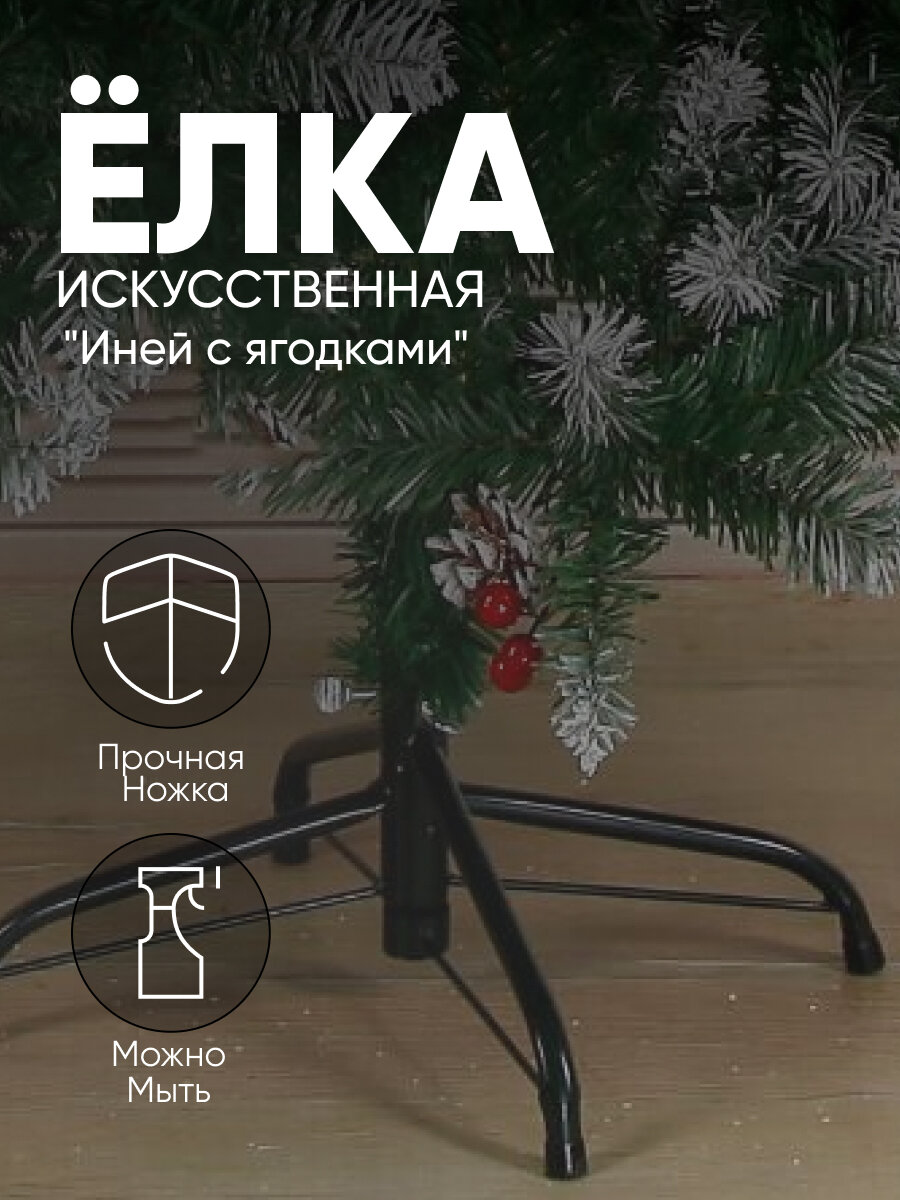 Ёлка "Иней с ягодками". 150 см. d нижнего яруса 95 см. 370 веток. металлическая подставка 540646 информация:
