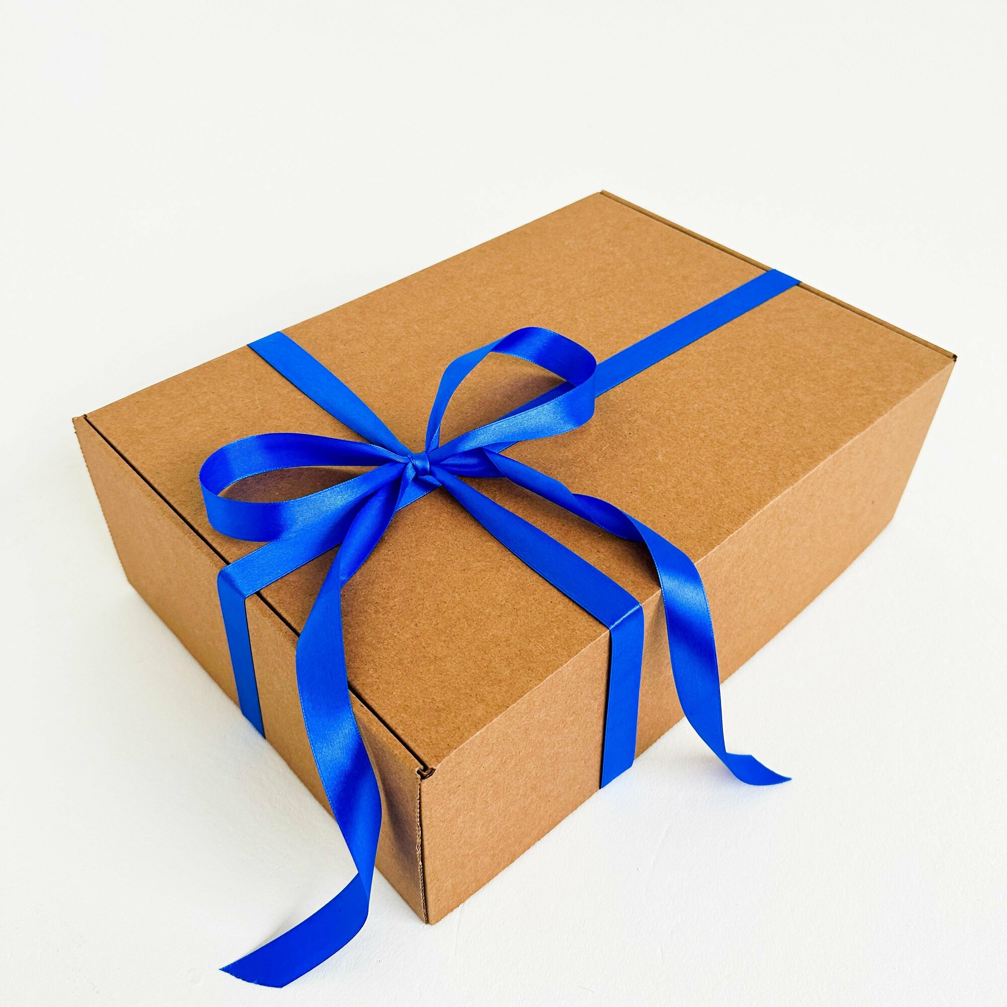 2 штуки - Подарочная коробка GILEV 44x32x15см с синей лентой и наполнителем крафт 1 528 ₽
