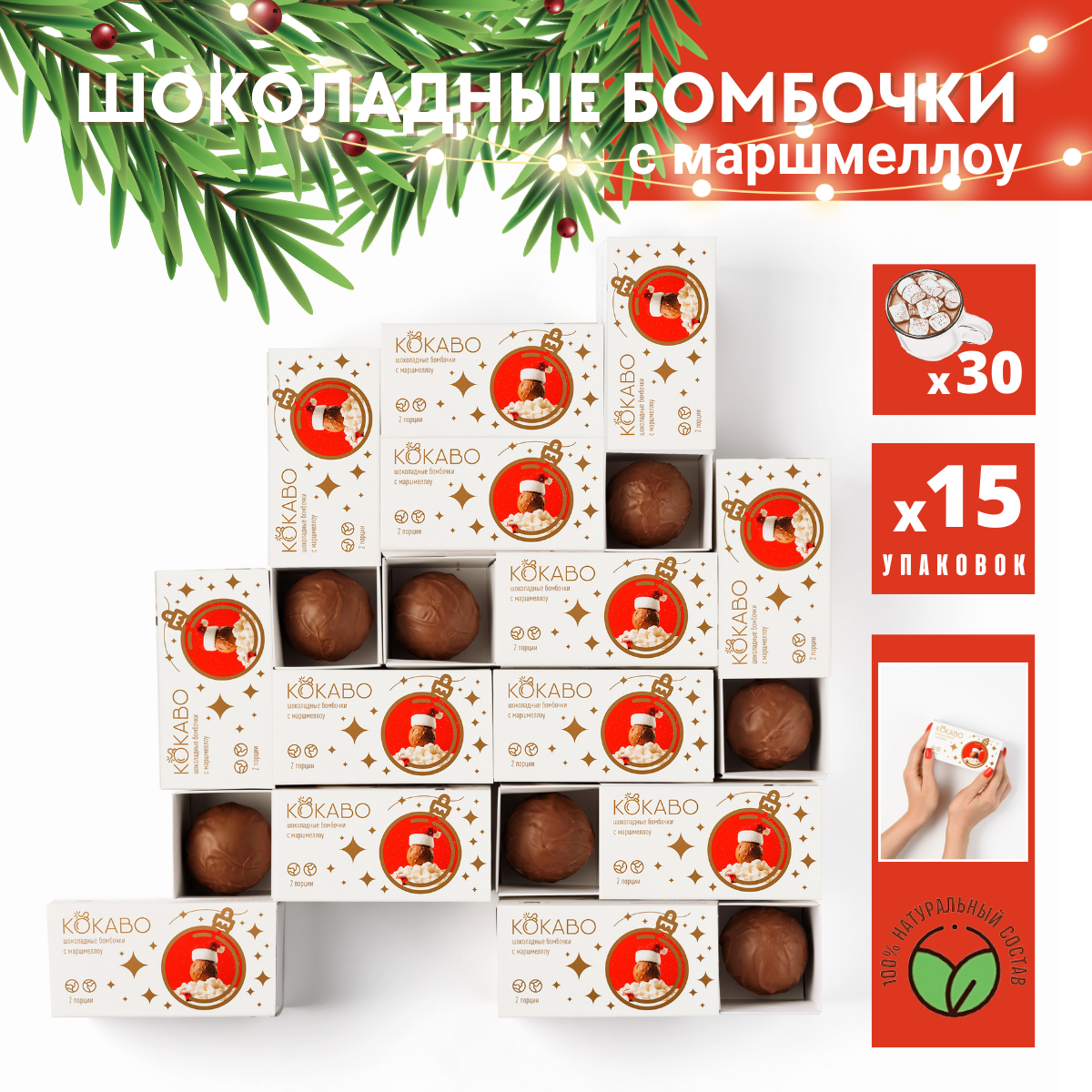 15 упаковок Новогодних Шоколадных Бомбочек по 2 шт / Горячий шоколад для детей информация: