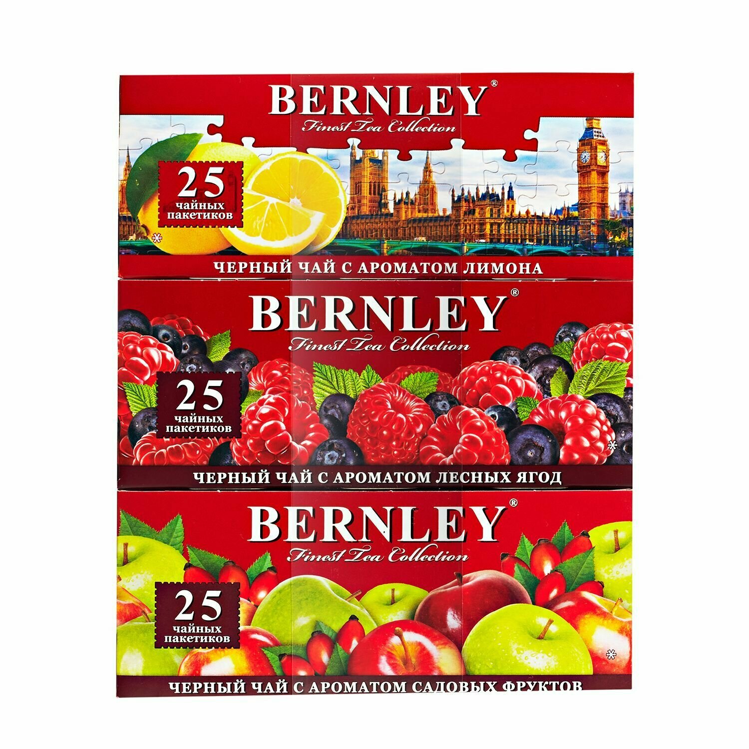 10 цен на Чай в пакетиках черный Bernley Лимон + Лесные ягоды + Садовые фрукты, 3 пачки по 25 шт.