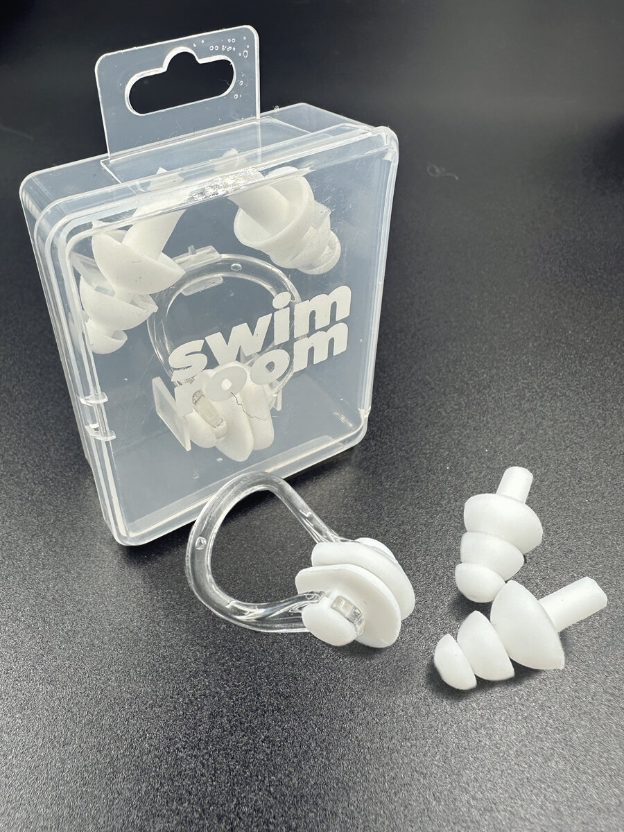 Комплект беруши и зажим для носа для плавания и бассейна SwimRoom “Earplugs and nose clip”, цвет белый информация: