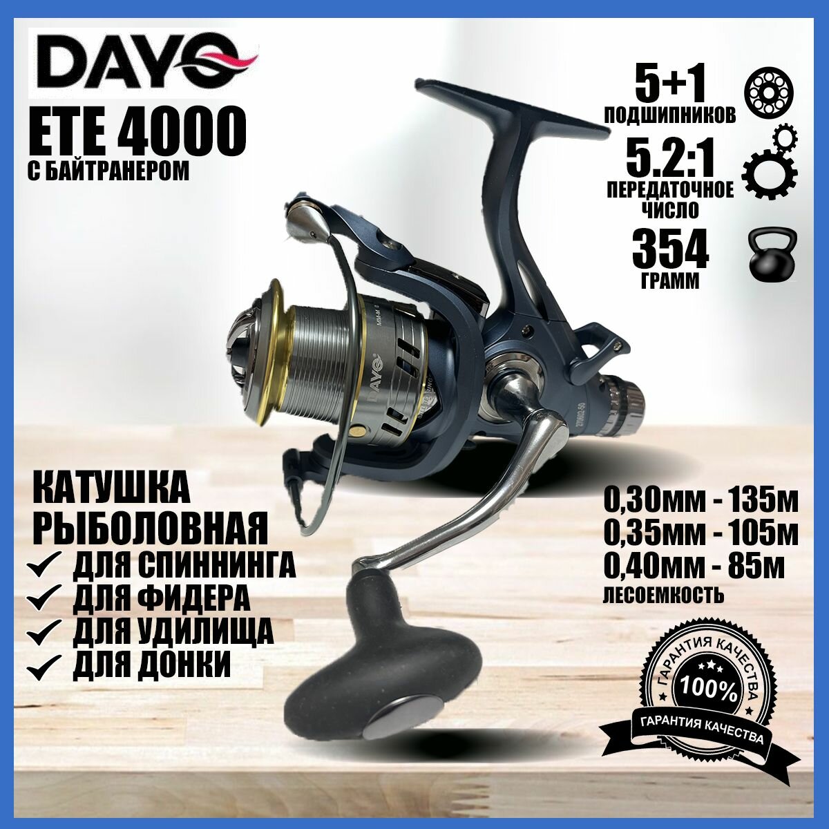 Катушка для спиннинга рыболовная / катушка для рыбалки 4000 DAYO ETE безынерционная с байтранером информация: