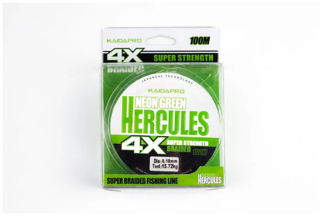 Плетенный шнур для рыбалки KAIDA PRO HERCULES Neon Green 4X 0.18 мм 100м информация: