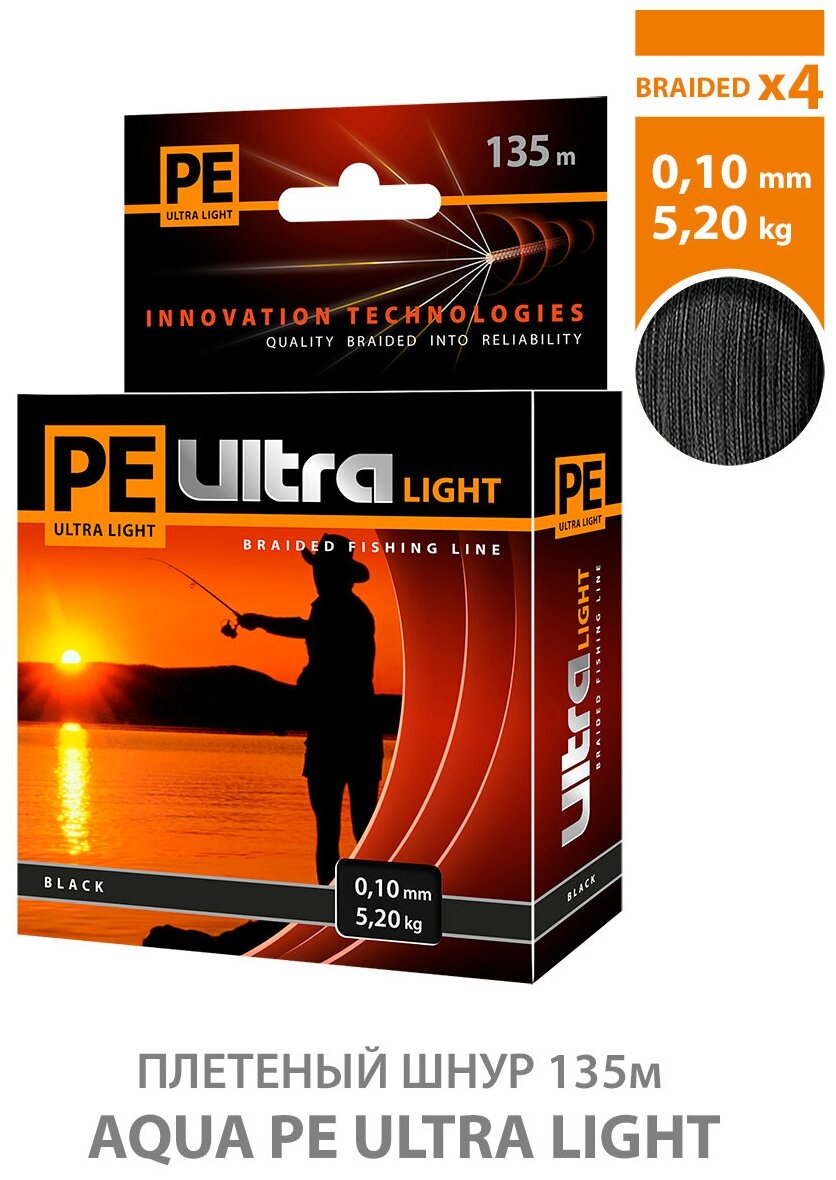 10 цен на Плетеный шнур для рыбалки AQUA PE ULTRA LIGHT Black 0,10mm 135m