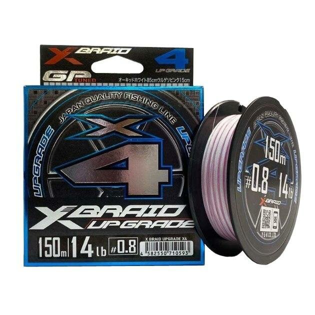 Шнур PE YGK X-BRAID Upgrade X4 #0.2/4LB (150 м, 0.074 мм, 1.82 кг, бело-розовый)