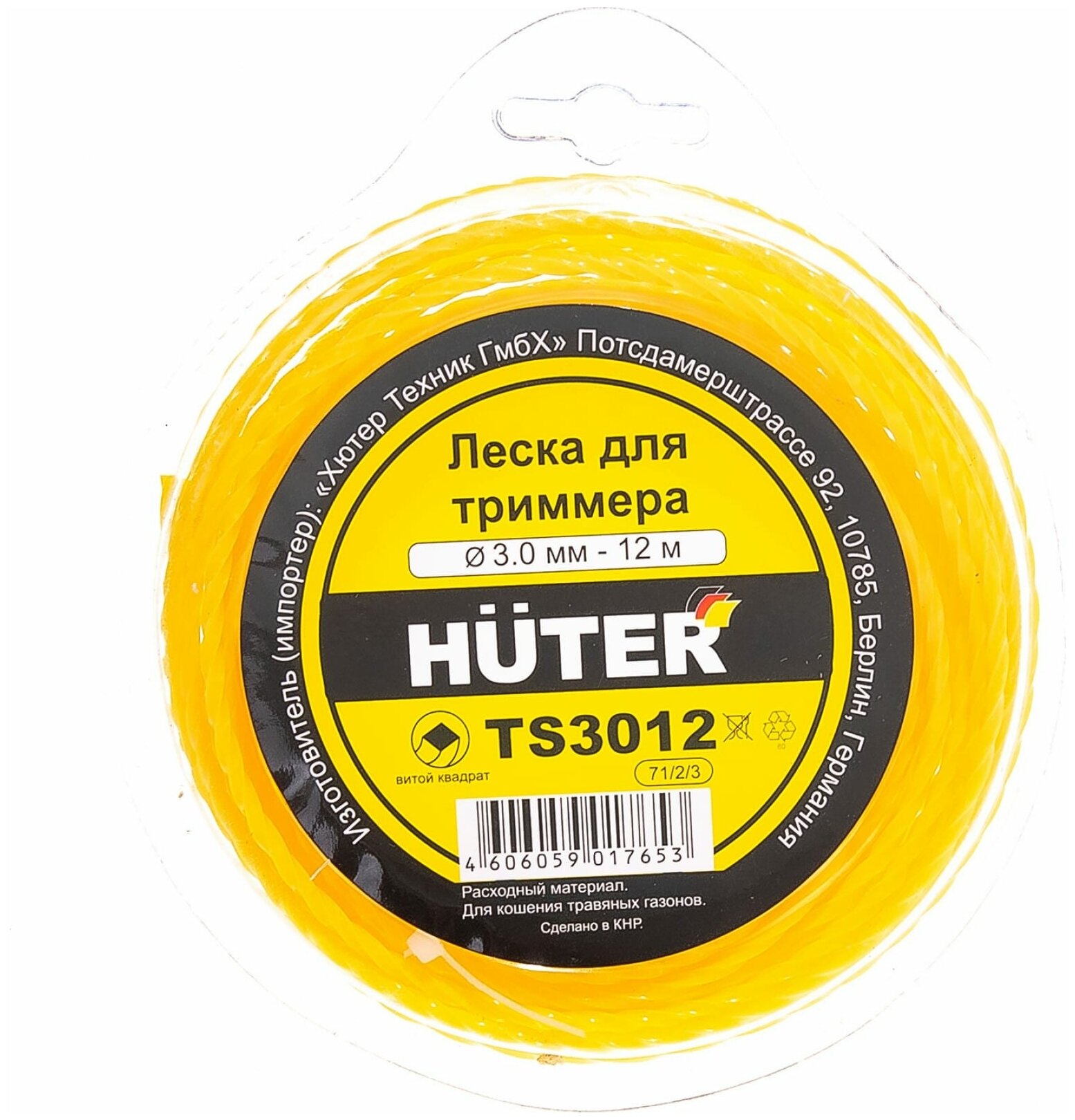 Леска для триммера HUTER TS3012, витой квадрат, 3 мм, 12 м, 71/2/3
