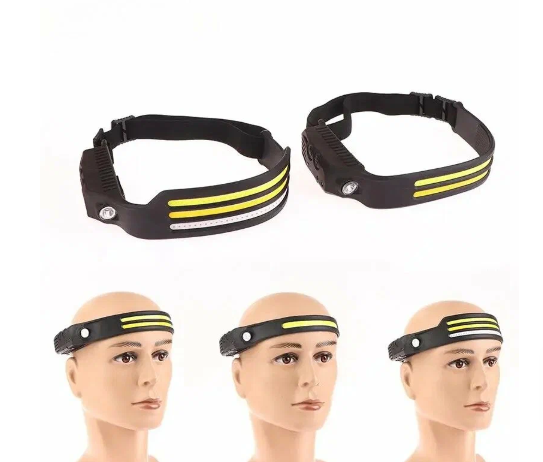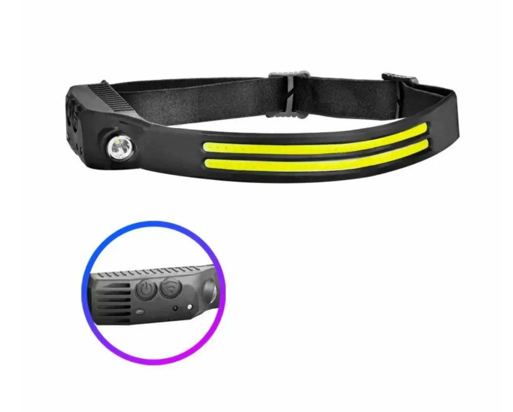 Фонарик налобный аккумуляторный светодиодный (гибкая COB панель + боковой светодиод, датчик движения, водонепроницаемый, зарядка USB)