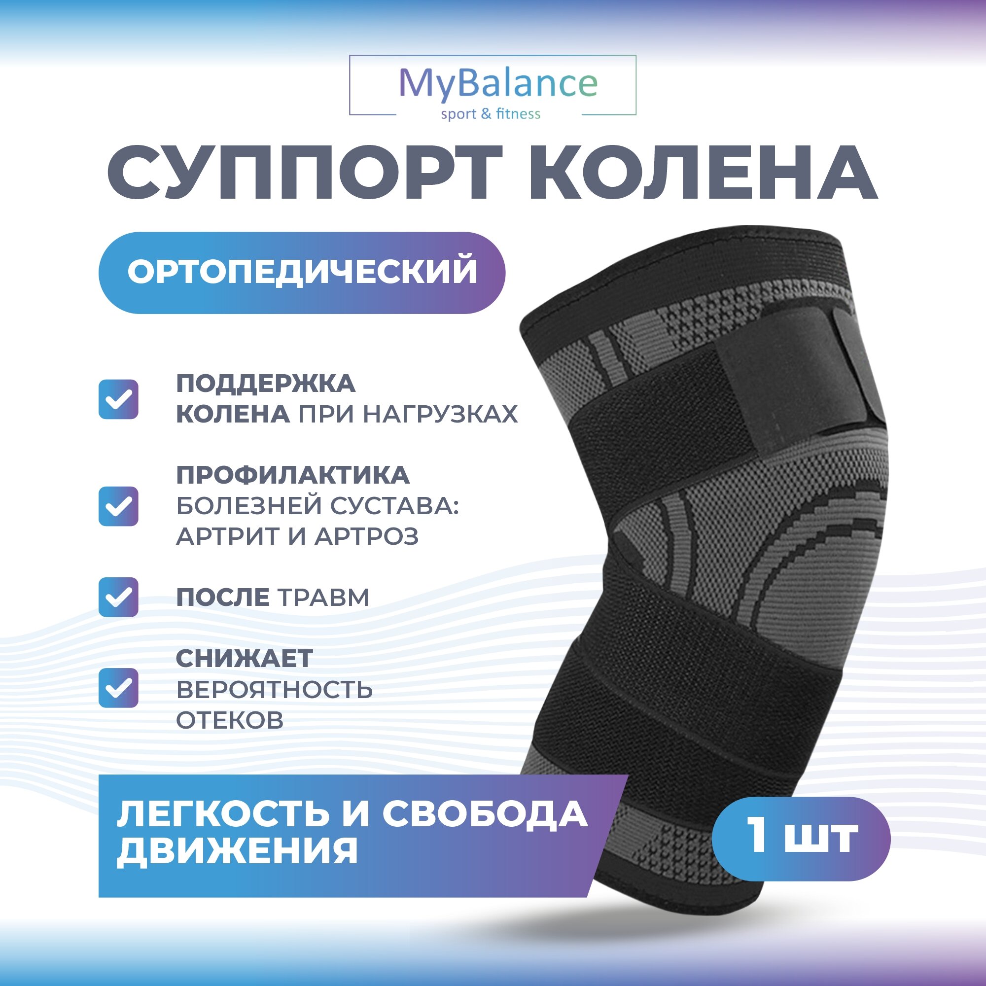Отзывы на Эластичный бандаж на коленный сустав MyBalance с застежками-липучками, мягкая/средняя регулирующая степень фиксации, суппорт универсальный, черный, размер XL