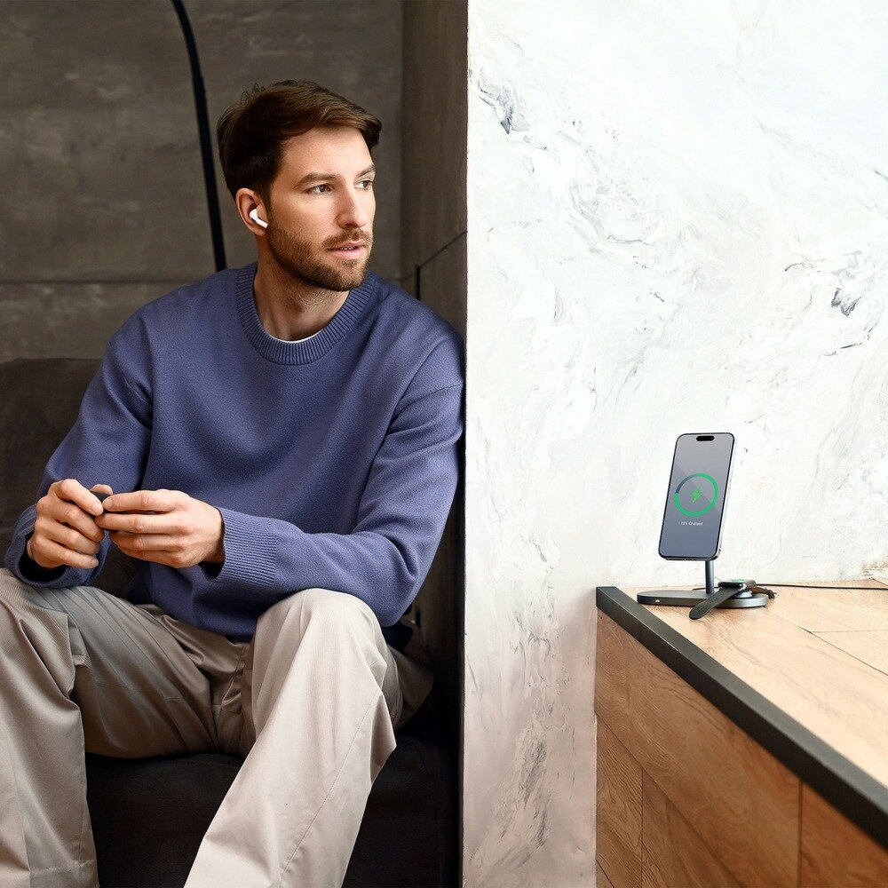Беспроводное зарядное устройство uBear Balance 3 в 1, MagSafe, 25 Вт, серый (WL09SG31-ADM)
