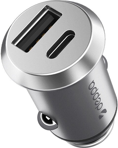Автомобильное зарядное устройство Deppa, USB-A + USB-C, серебристый, 38W, QC 3.0 (11212)