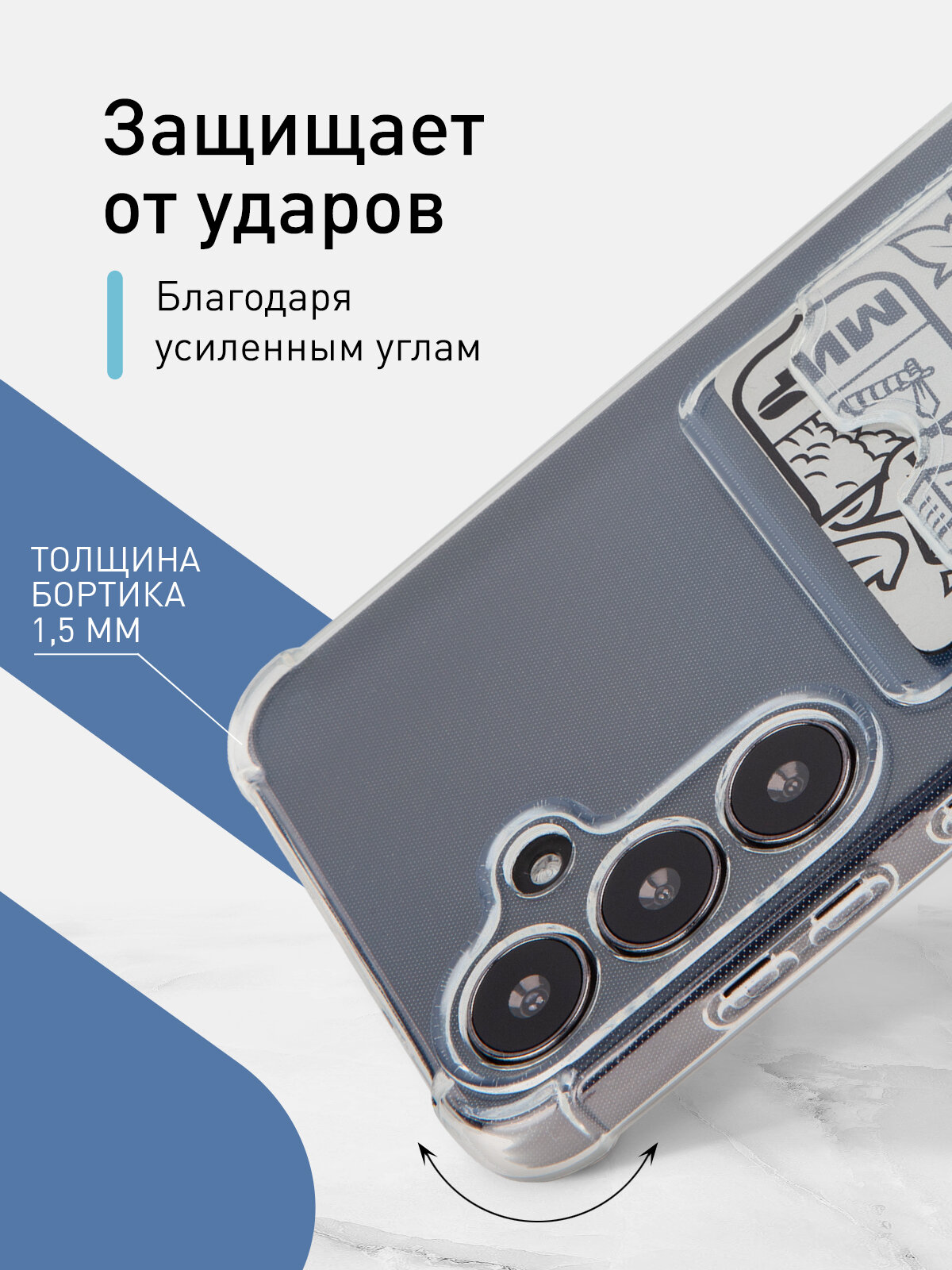 Отзывы на Противоударный чехол с кармашком Rosco на Samsung Galaxy S24+ (Самсунг Галакси С24+), силиконовый, прозрачный