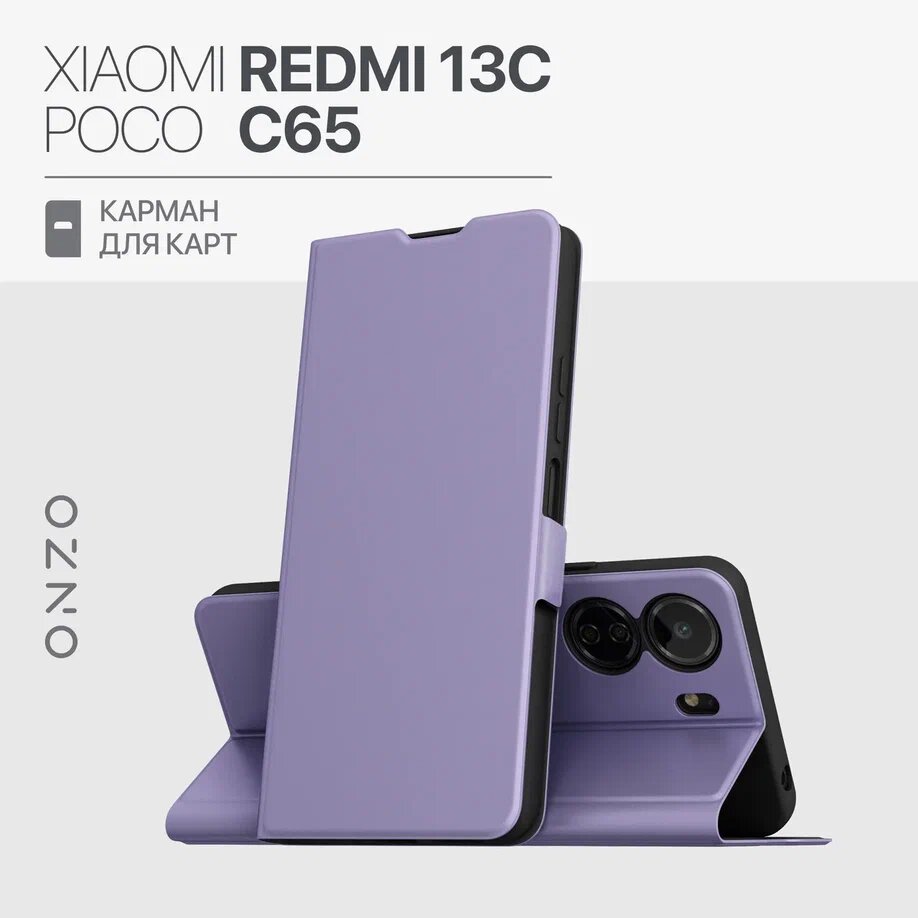 Чехол на Редми 13С и Поко С65 из искусственной кожи / Книжка на Redmi 13C, POCO C65 с кармашком, сиреневый информация: