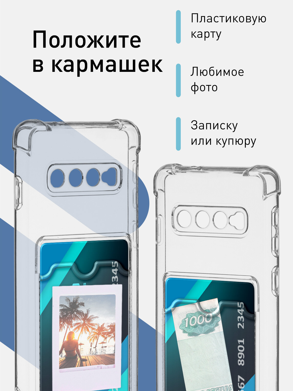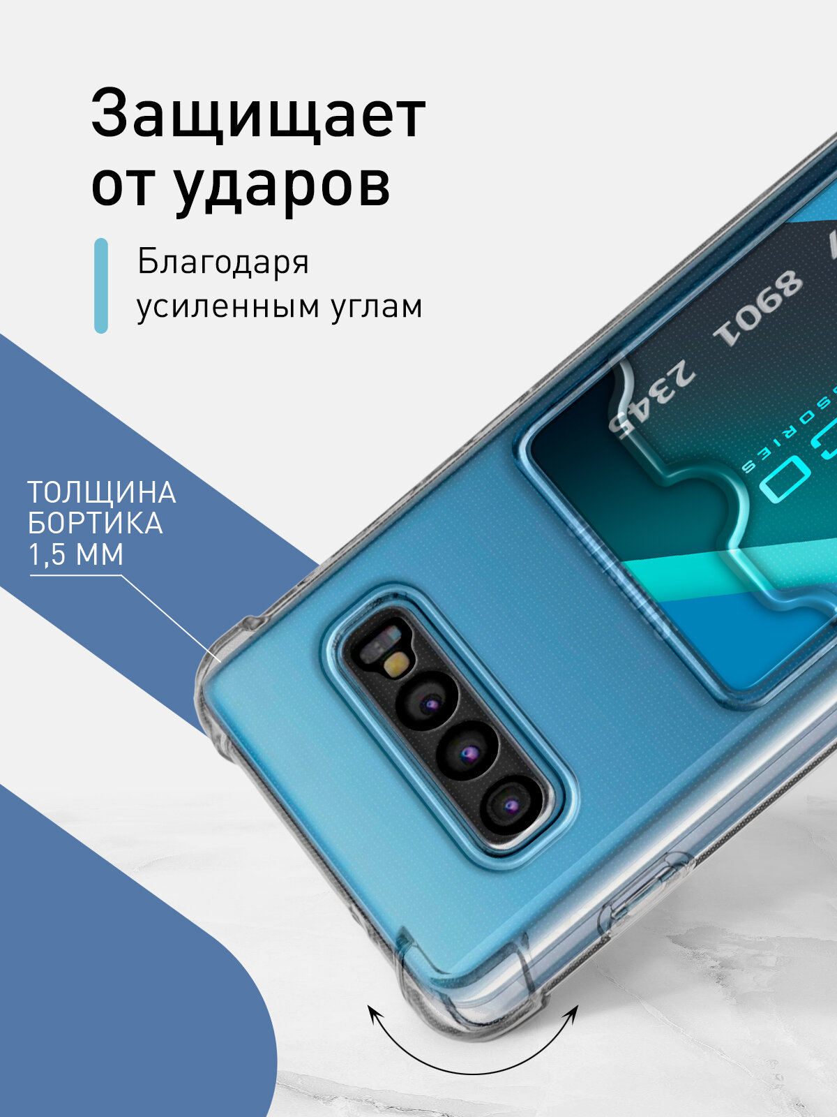 Чехол с кармашком для Samsung Galaxy S10 (Самсунг С10, С10) противоударный, чехол для карт, силиконовый, усиленные углы, кардхолдер, прозрачный чехол 359 ₽