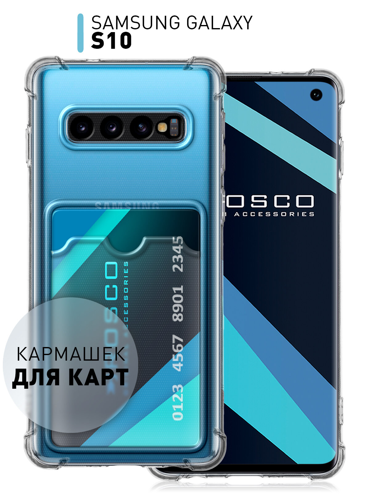 Отзывы на Противоударный чехол с кармашком Rosco на Samsung Galaxy S10 (Самсунг Галакси С10), силиконовый, прозрачный