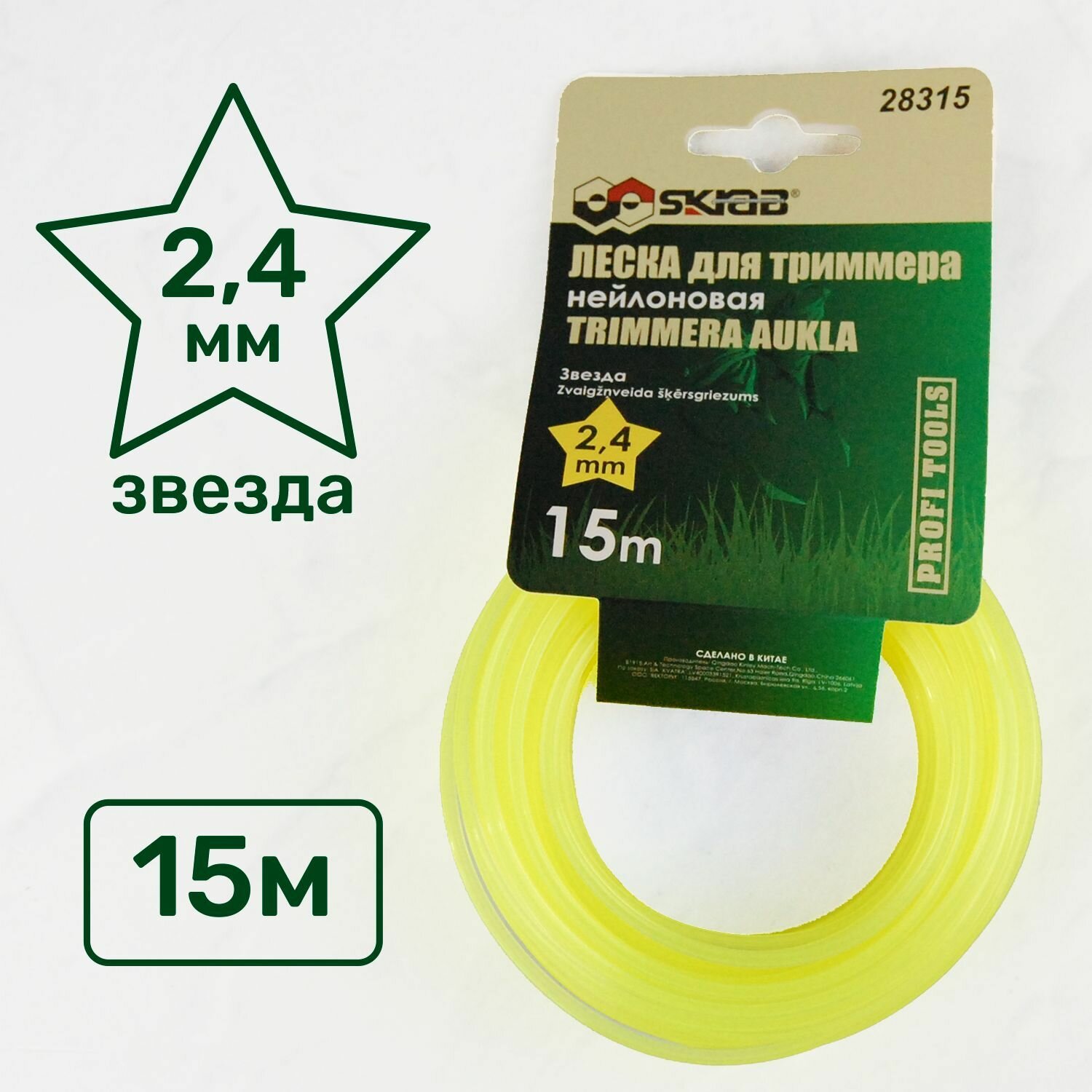 Леска для триммера 2,4мм*15м звезда/желтая (Skrab) (Артикул : 28315) информация: