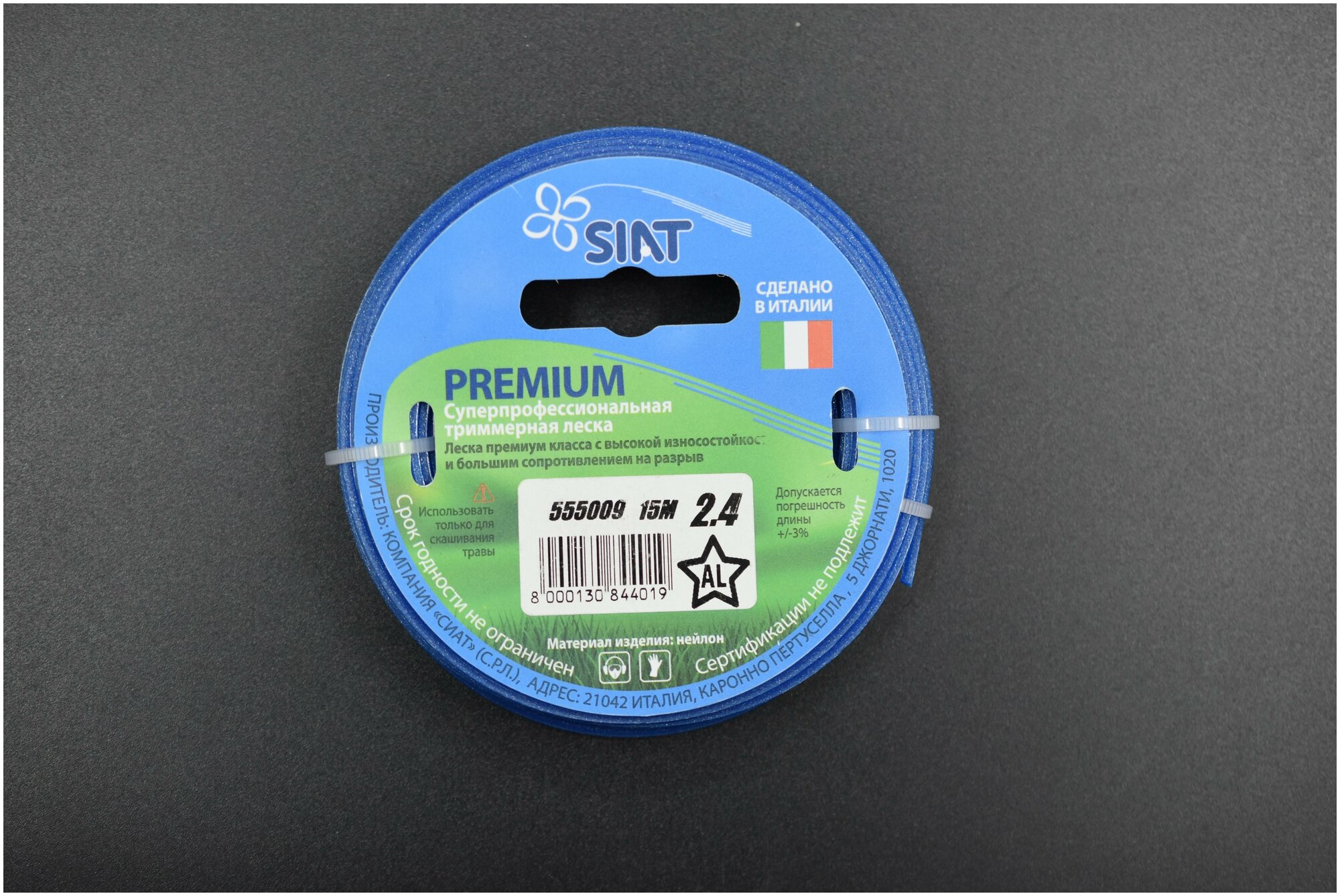 Леска для триммера 2.4 мм Звезда алюминиум (15 м) Premium SIAT (Италия) [555009]
