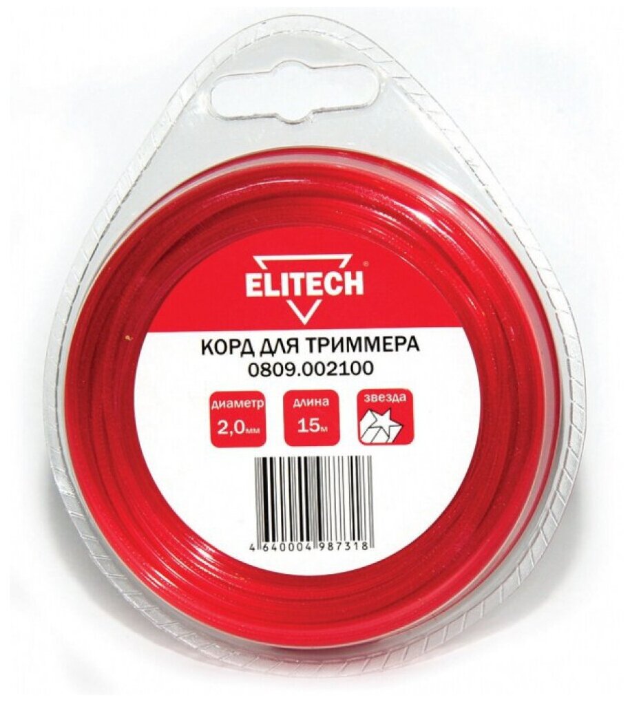 Леска для триммера Elitech 0809.002100 2.0мм, 15м, звезда, блистер